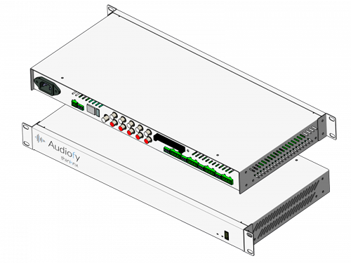 Audiofy es un sencillo pero potente sistema de audio profesional multizona integrado. Un solo dispositivo que combina enrutamiento de audio, salidas amplificadas y hasta cuatro reproductores de red independientes.